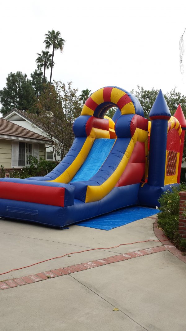 Try our brand new big size Jumper combo with large slide, size 31 x 15 x 15 ideally for big kids, Teens would can climb and slide so much fun ! It has a platform on the top and on the bottom, It requires 110 v. 15 amps (AT HOUSES) with a large area that can accommodate up to 6 or 8 with a lots of safety features, like netting windows around which makes iteasy to keep an eye on the children and safety ramp at the entrance.