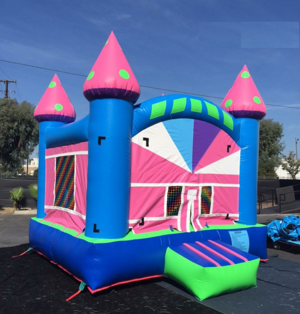 Fantastic inflatables 13 x 13 that requires a 110 v. 15 amps, with a large area that can accommodate up to 10 kids with a lots of safety features, like netting windows around which makes it easy to keep an eye on the children and safety ramp at the entrance