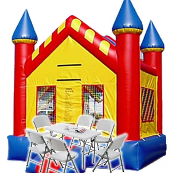 Fantastic jumpers multicolor (for boys or girls) size 15x 15 that requires a 110 v. 15 amps, (AT HOUSES) with a large area that can accommodate up to 10 kids with a lots of safety features, like netting windows around which makes it easy to keep an eye on the children and safety ramp at the entrance.